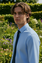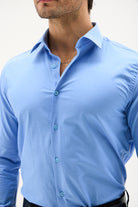 Kolay Ütülenebilir Klasik Yaka Pamuklu Slim Fit Mavi Gömlek