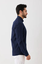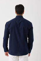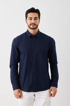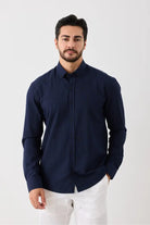 Uzun Kollu %100 Pamuk Erkek Gömlek – Düğmeli, Keten Dokulu, Slim Fit