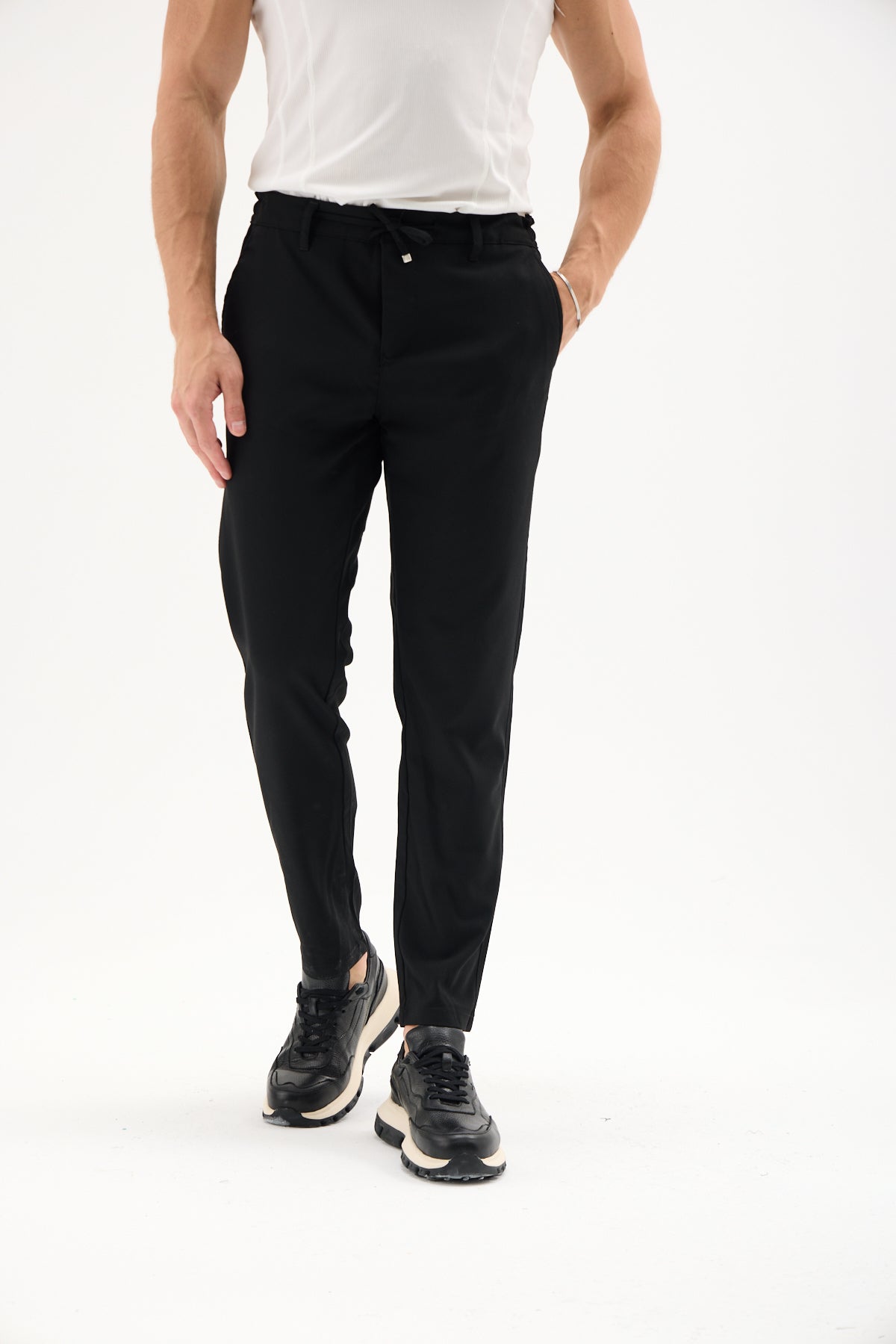 Siyah İpli Lastikli Jogger Comfort Fit Erkek Pantolon