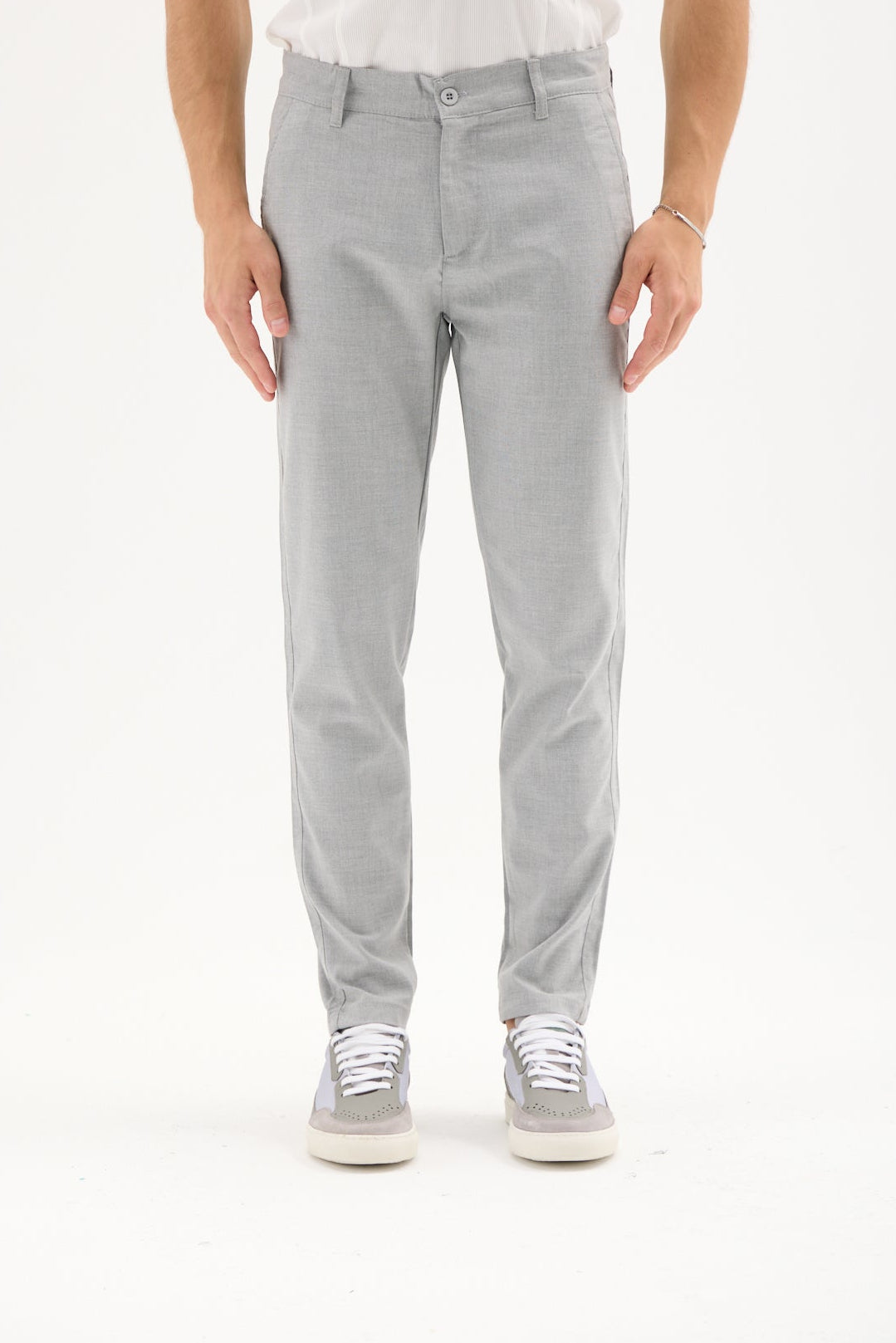 Gri Kemerli Bel Comfort Fit Erkek Pantolon