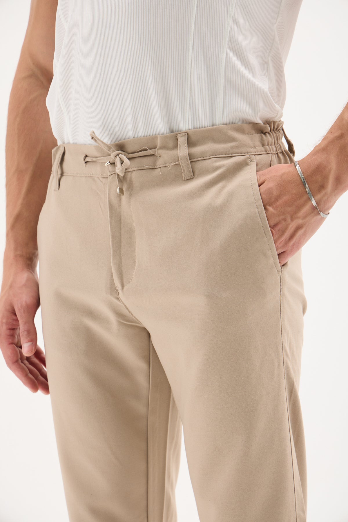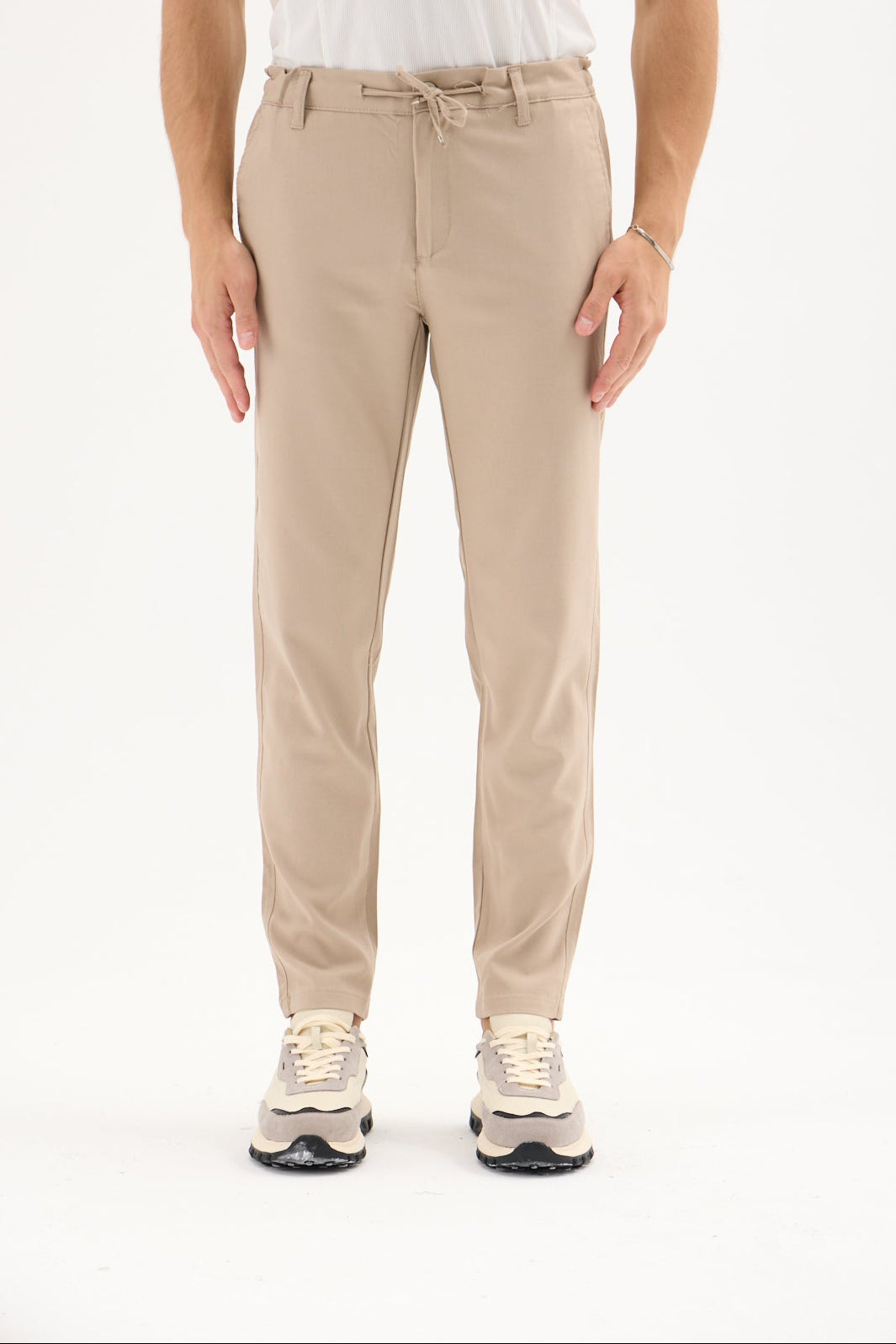 Bej İpli Lastikli Jogger Comfort Fit Erkek Pantolon