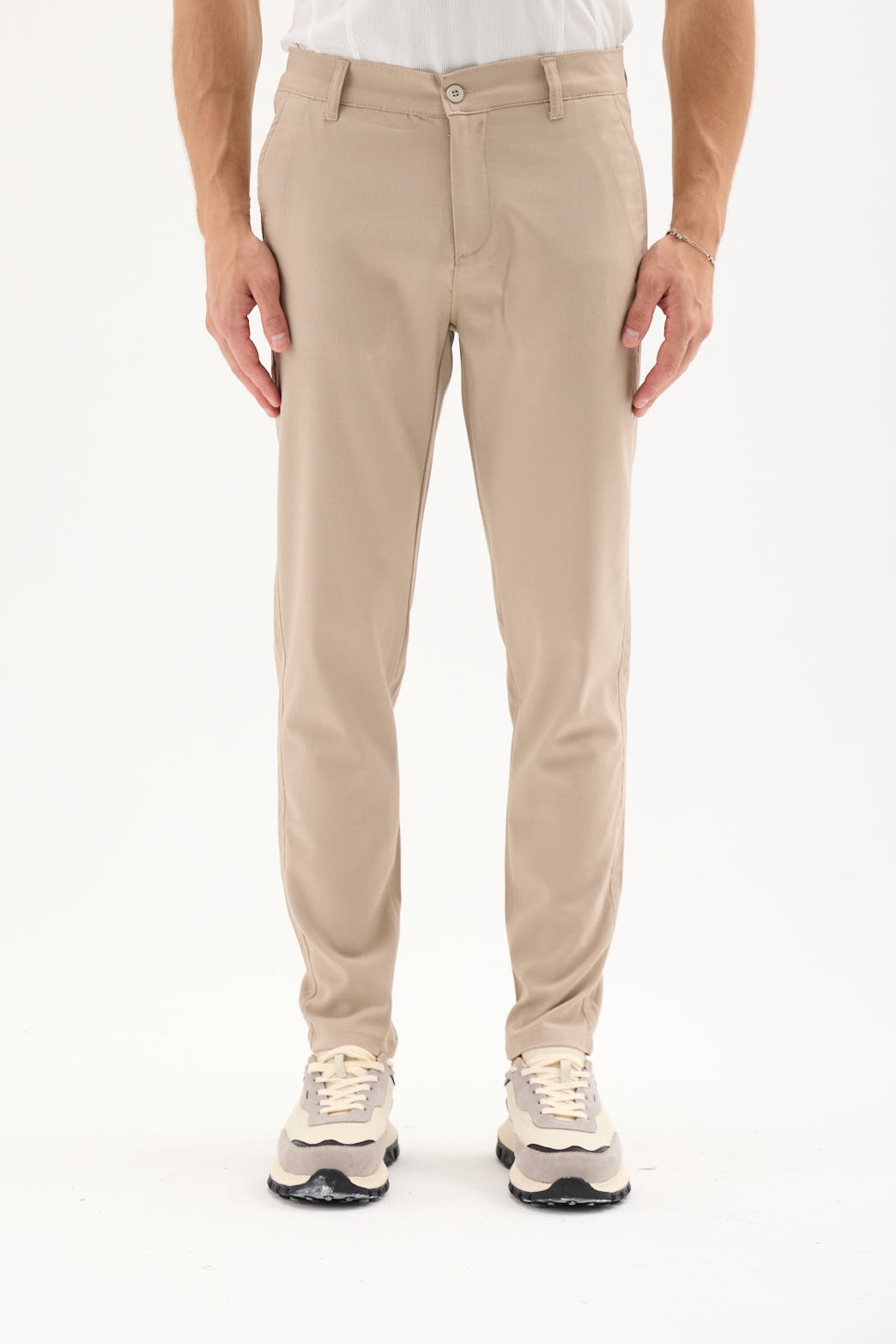 Bej Kemerli Bel Comfort Fit Erkek Pantolon