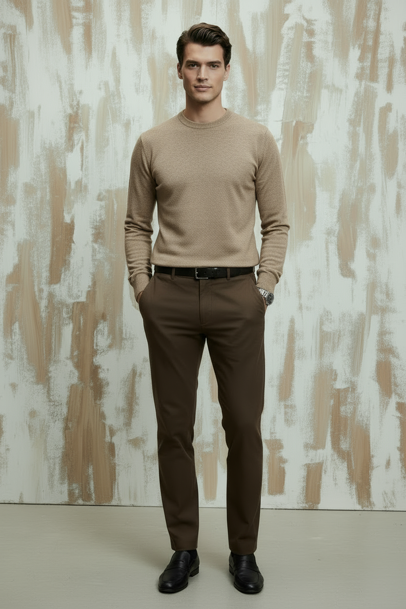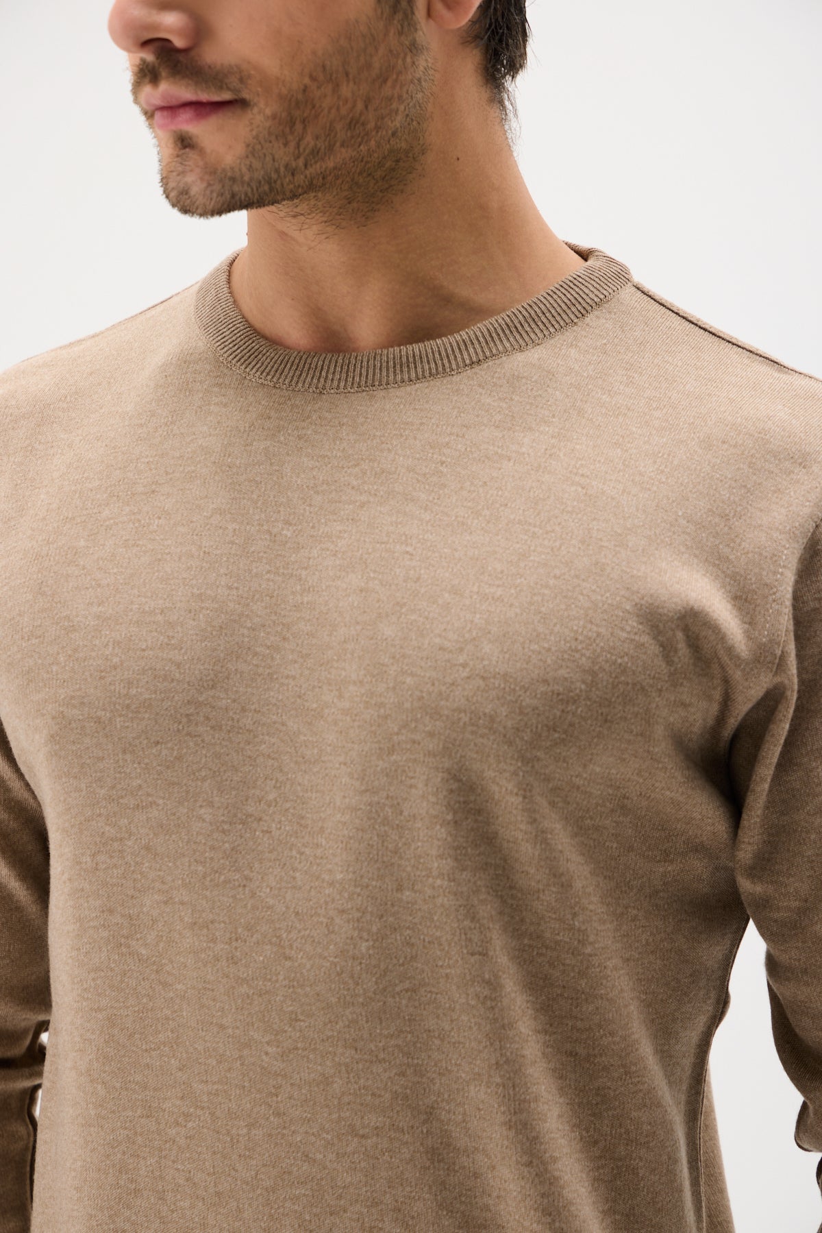 Bej Pamuklu Bisiklet Yaka Triko Kazak