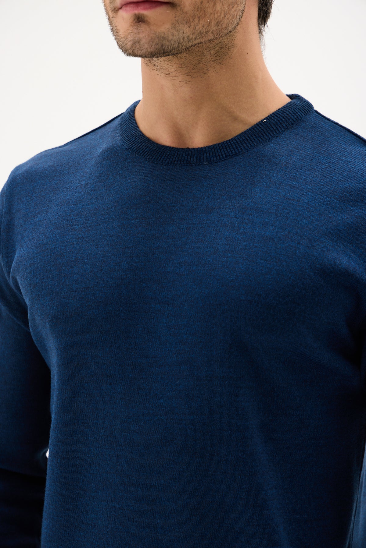 İndigo Pamuklu Bisiklet Yaka Triko Kazak
