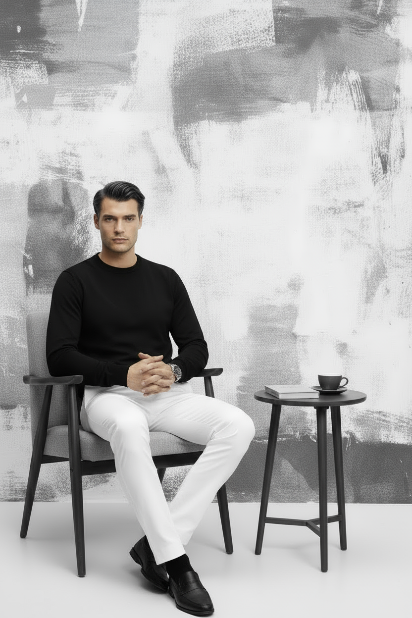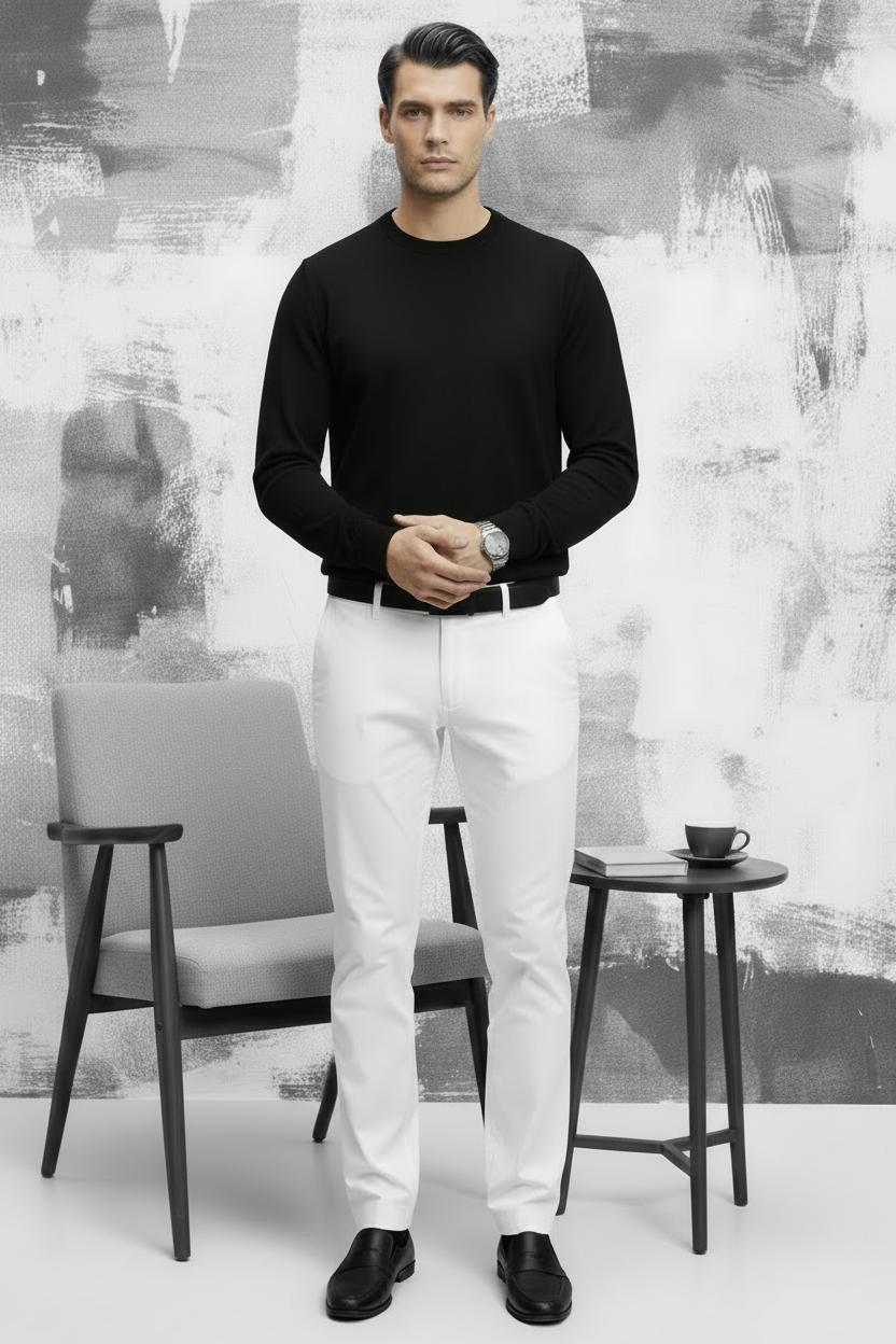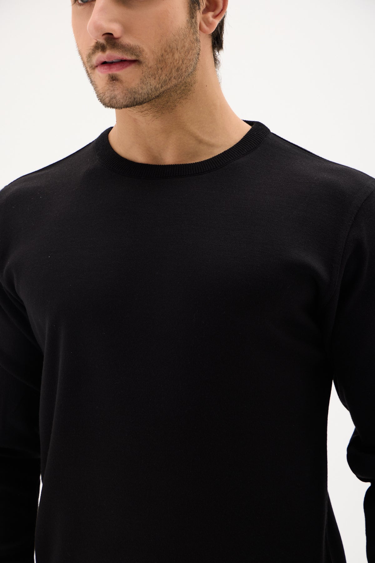 Siyah Pamuklu Bisiklet Yaka Triko Kazak