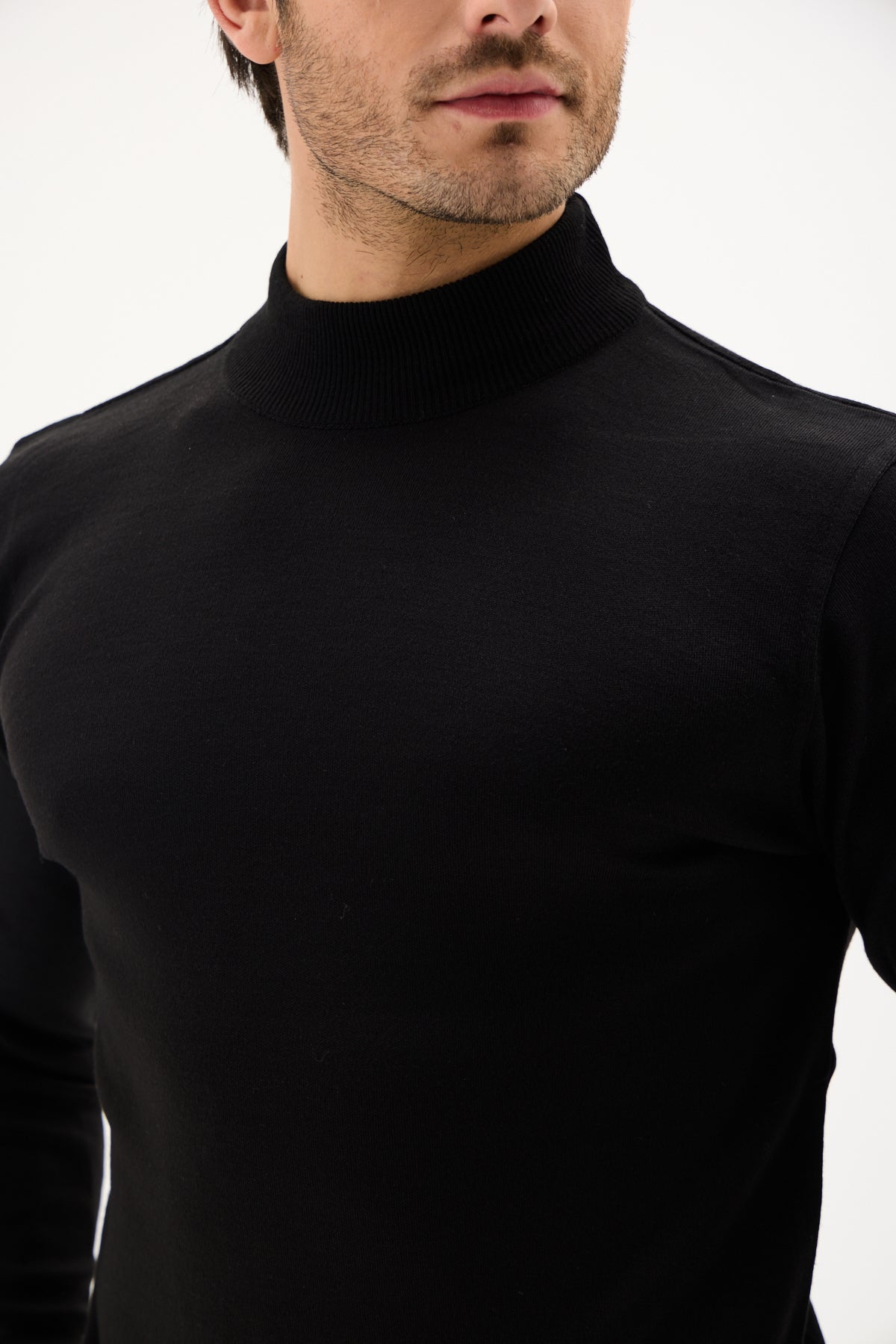 Siyah Pamuklu Balıkçı Yaka Triko Kazak