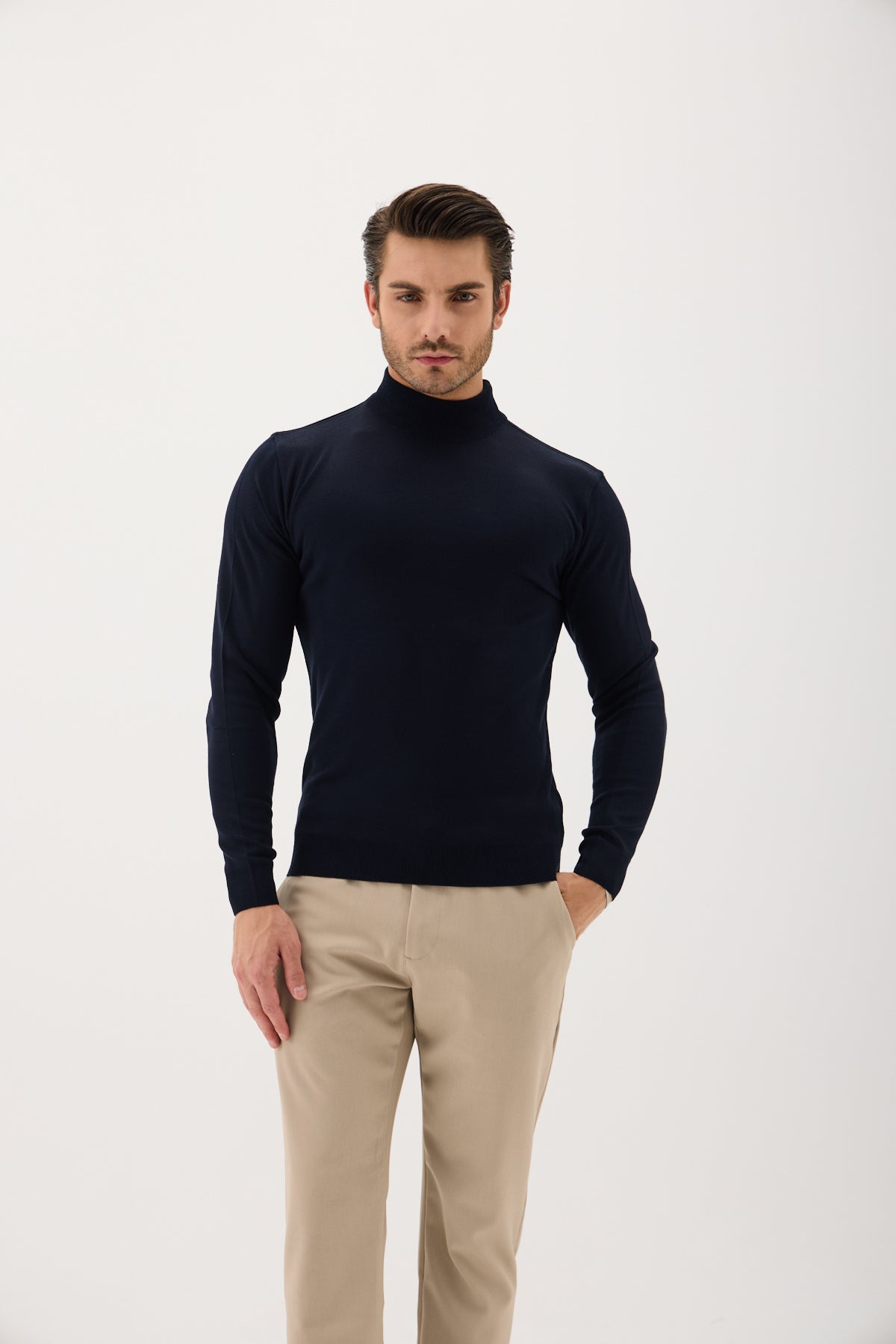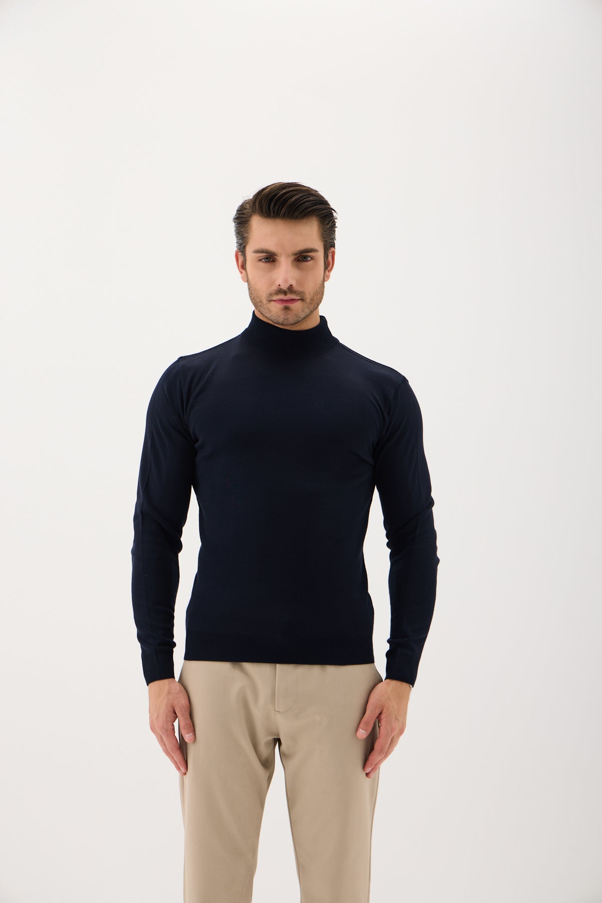 Lacivert Pamuklu Balıkçı Yaka Triko Kazak