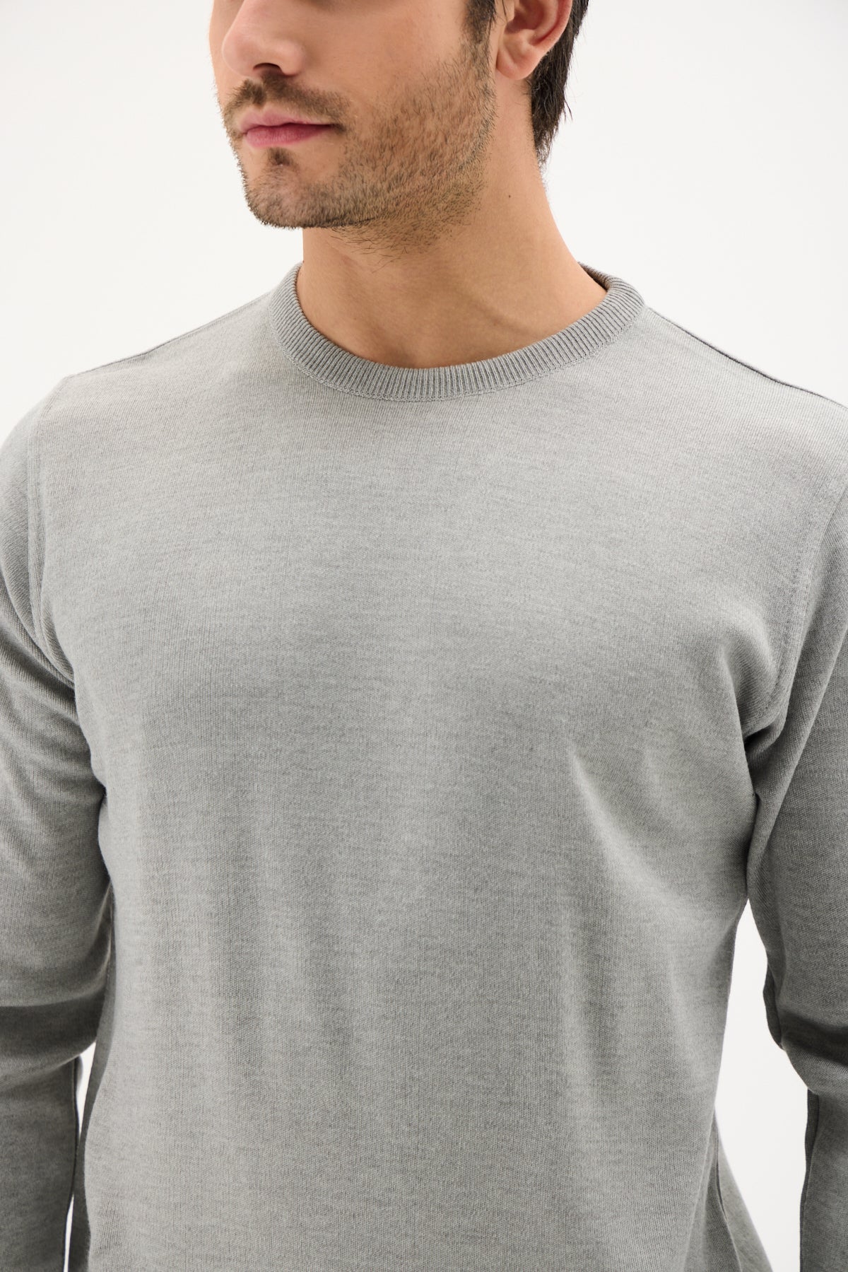 Gri Pamuklu Bisiklet Yaka Triko Kazak