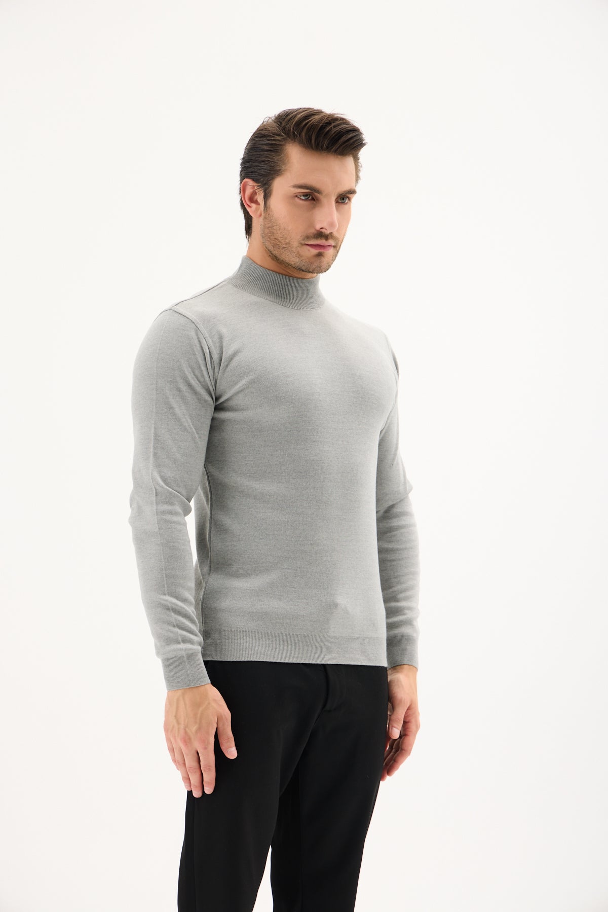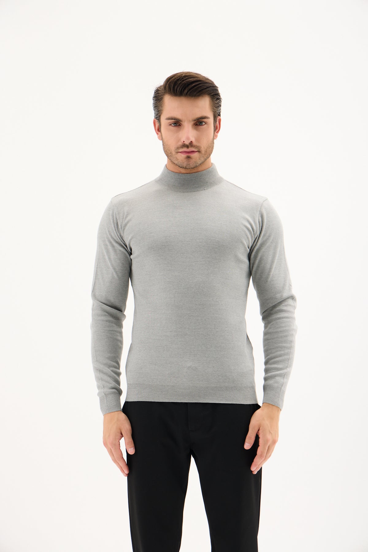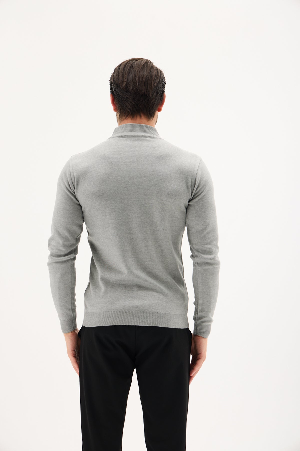 Gri Pamuklu Balıkçı Yaka Triko Kazak