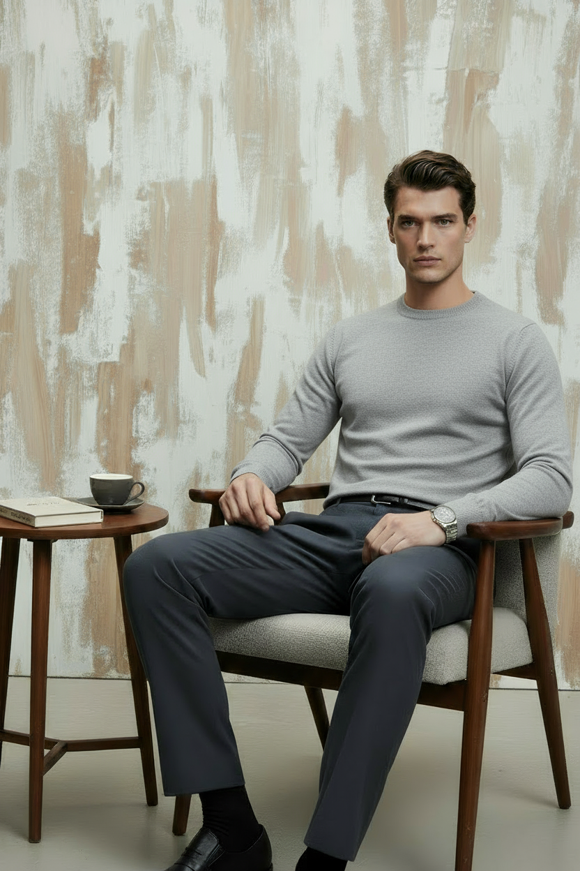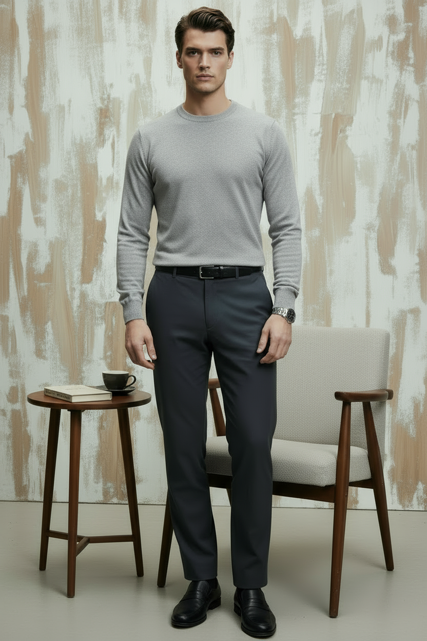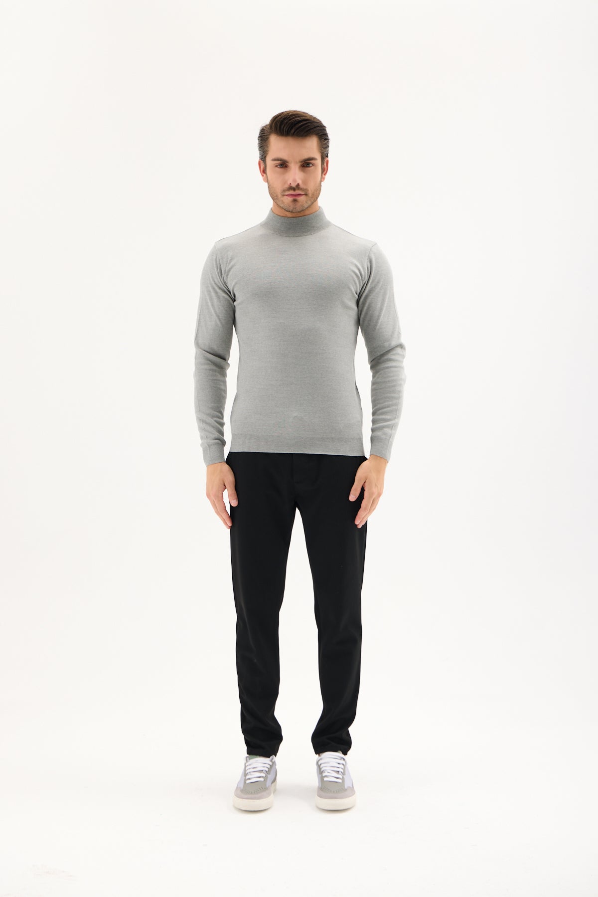 Gri Pamuklu Balıkçı Yaka Triko Kazak