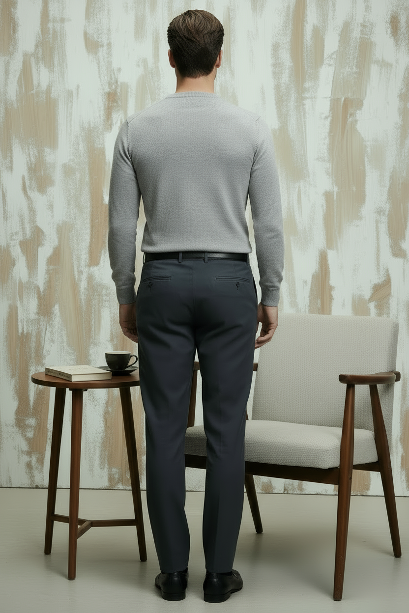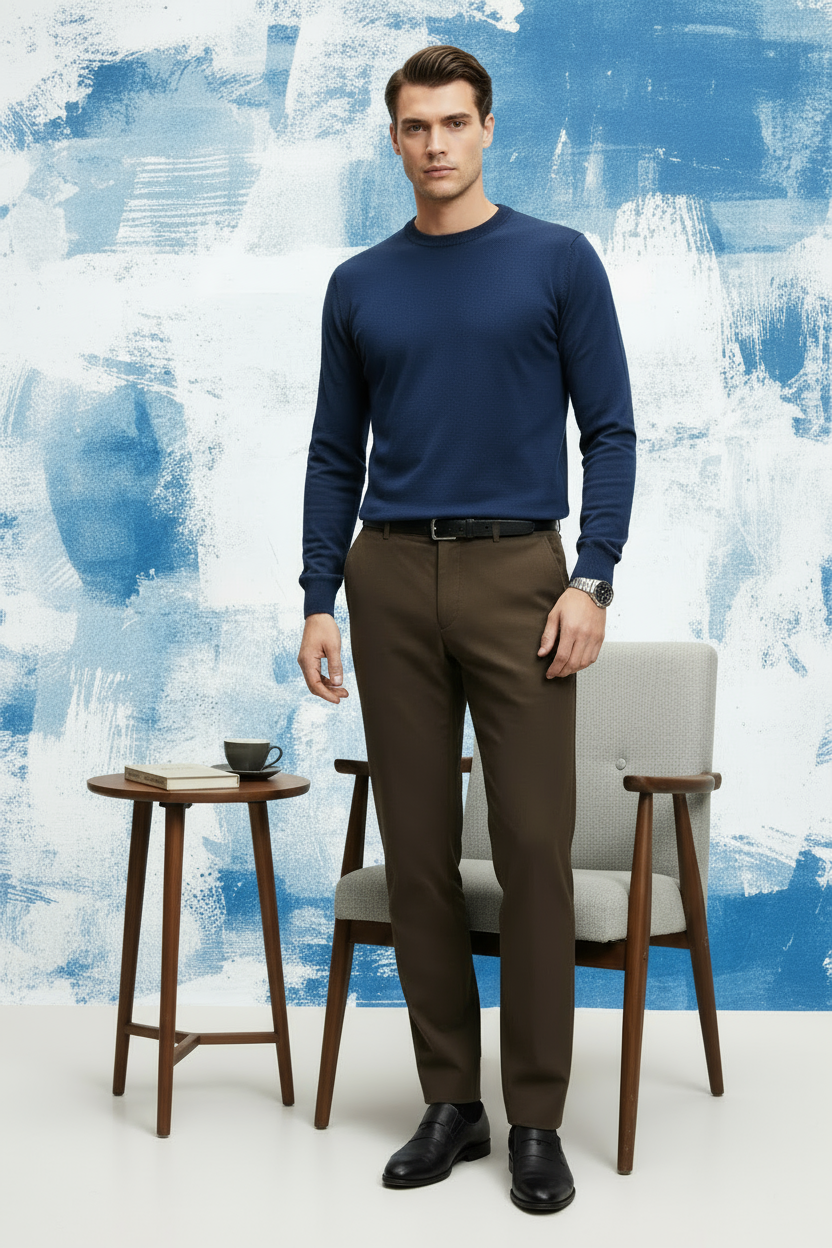 Lacivert Pamuklu Bisiklet Yaka Triko Kazak