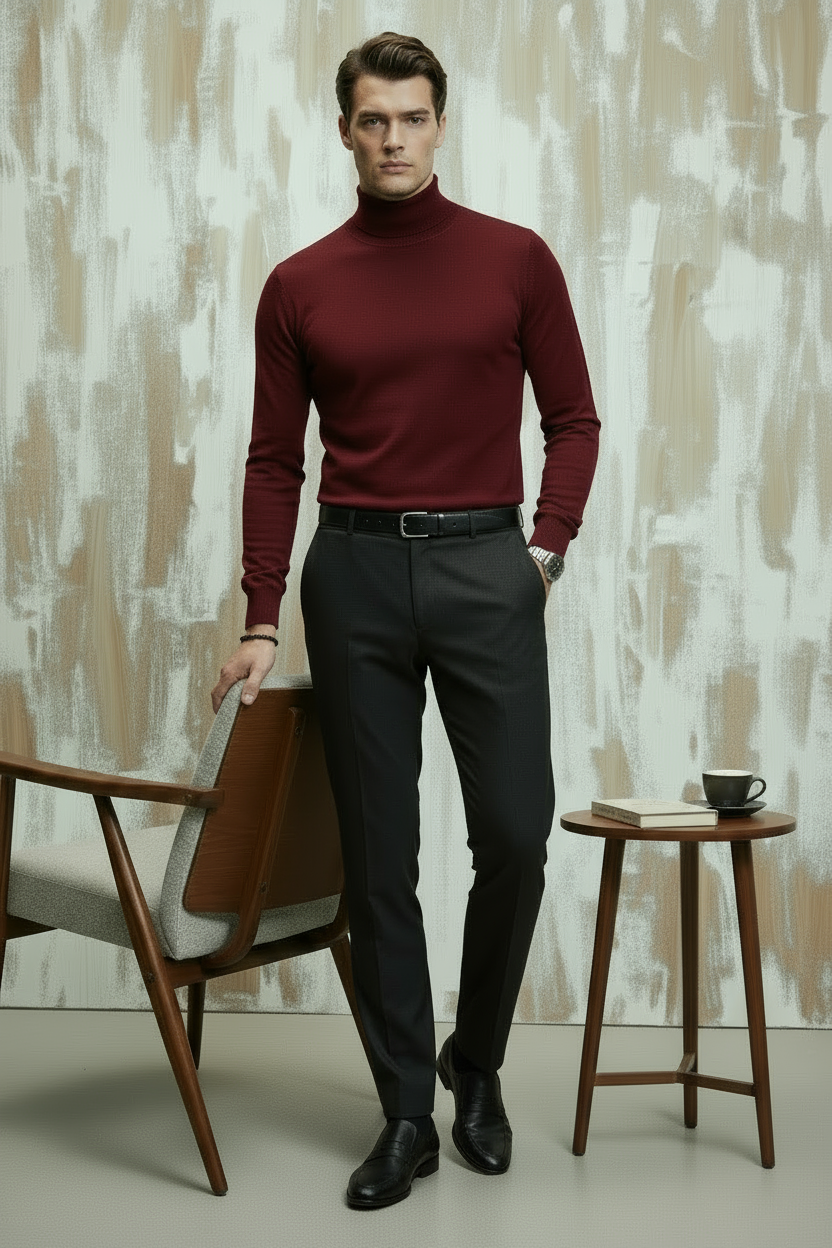 Bordo Pamuklu Balıkçı Yaka Triko Kazak