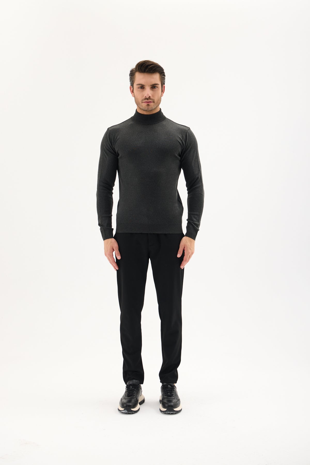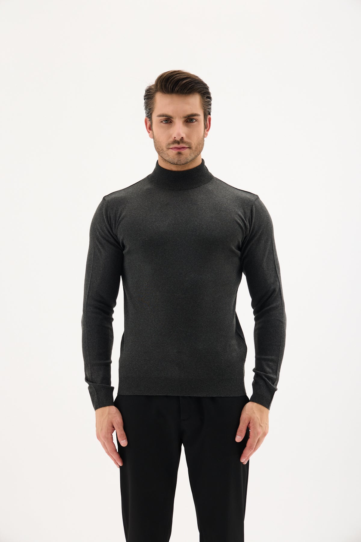 Antrasit Pamuklu Balıkçı Yaka Triko Kazak