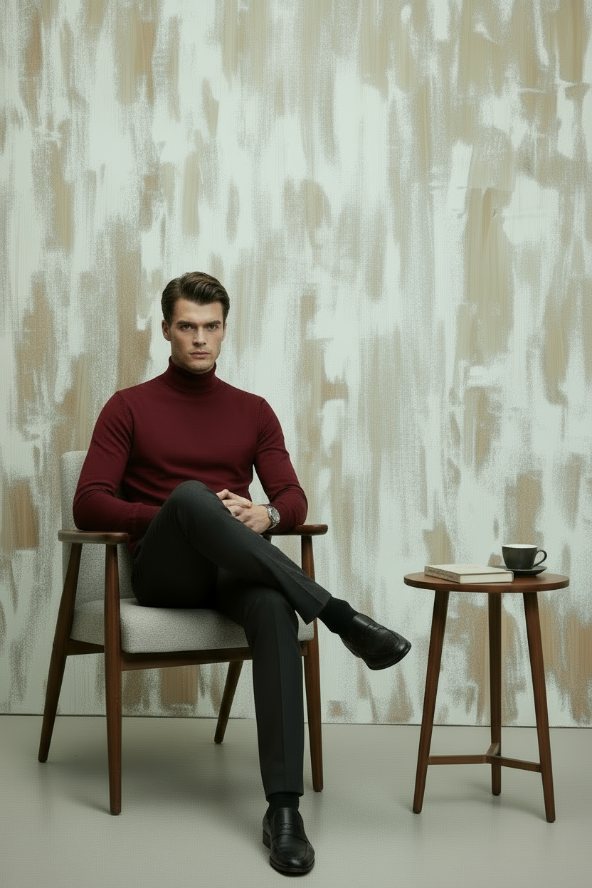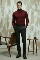 Bordo Pamuklu Balıkçı Yaka Triko Kazak