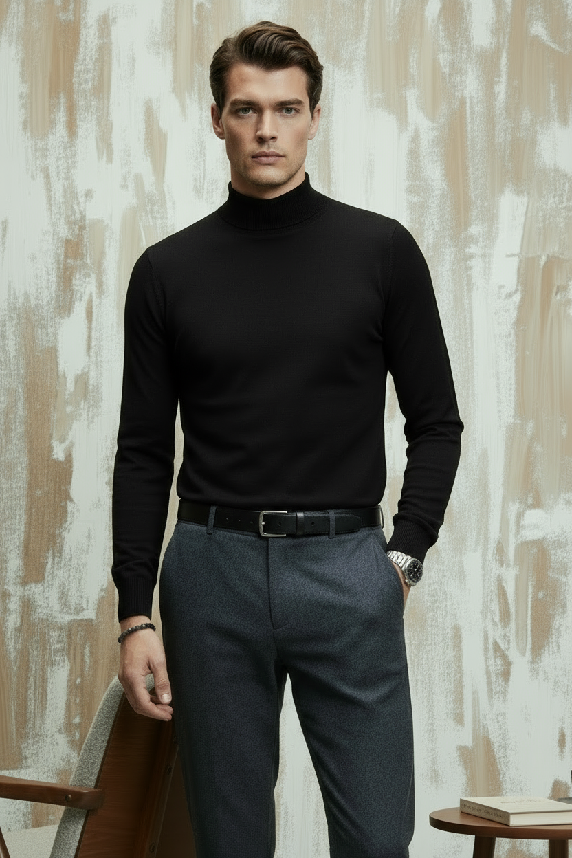 Siyah Pamuklu Balıkçı Yaka Triko Kazak