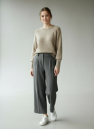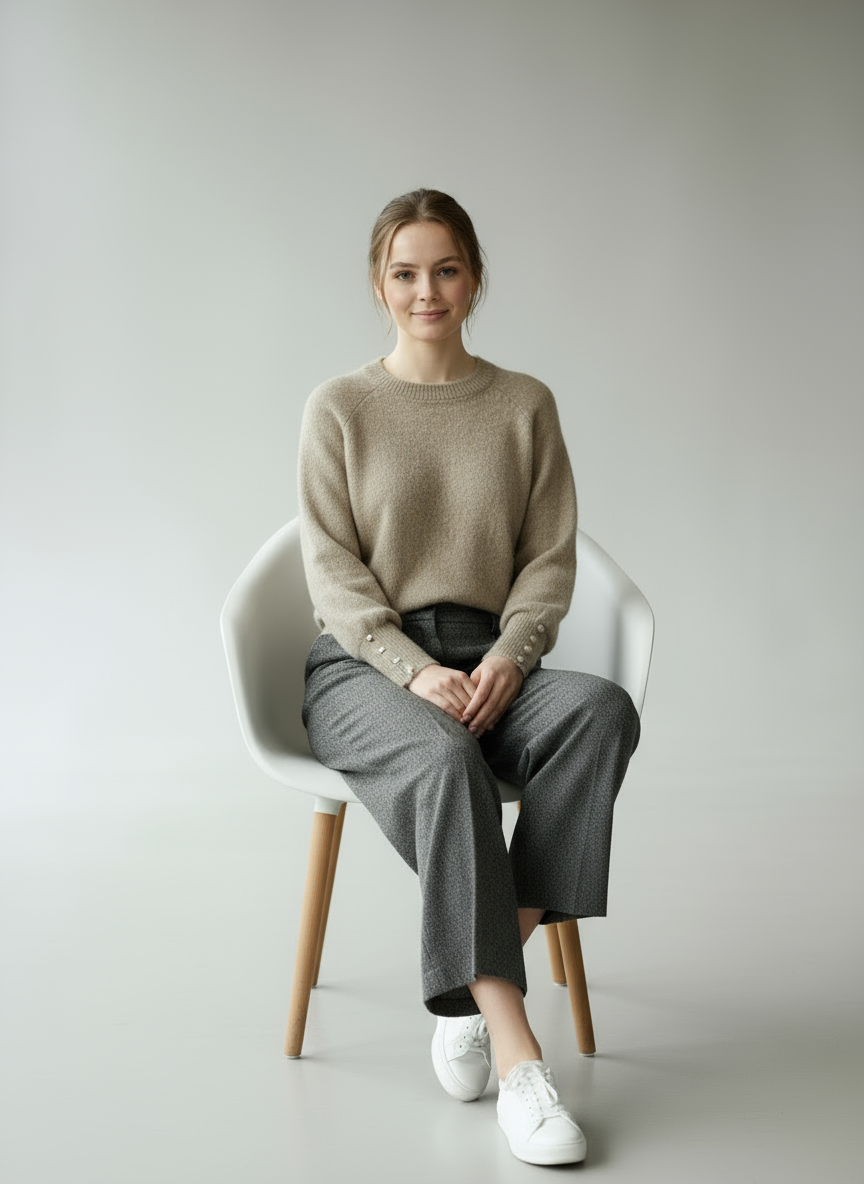 Sıcaklığı ve şıklığı bir arada sunan bu kazak, kış gardırobunuzun en zarif ve konforlu parçası olacak. Klasik silüeti, lüks detaylarla zenginleştirilerek zamansız bir görünüme kavuşuyor.