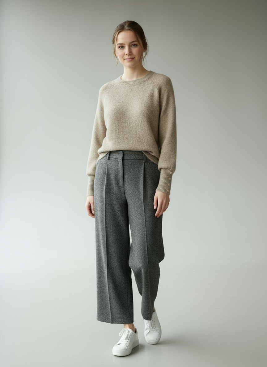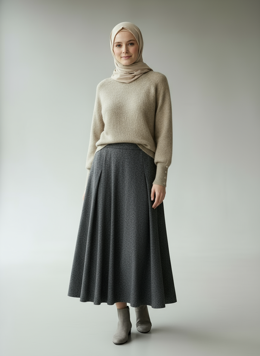 Zamansız Bej Rengi: Nötr ve sıcak Bej rengi, kışlık etekleriniz (görseldeki antrasit gibi), kumaş pantolonlarınız veya jeanlerinizle zahmetsizce eşleşir.