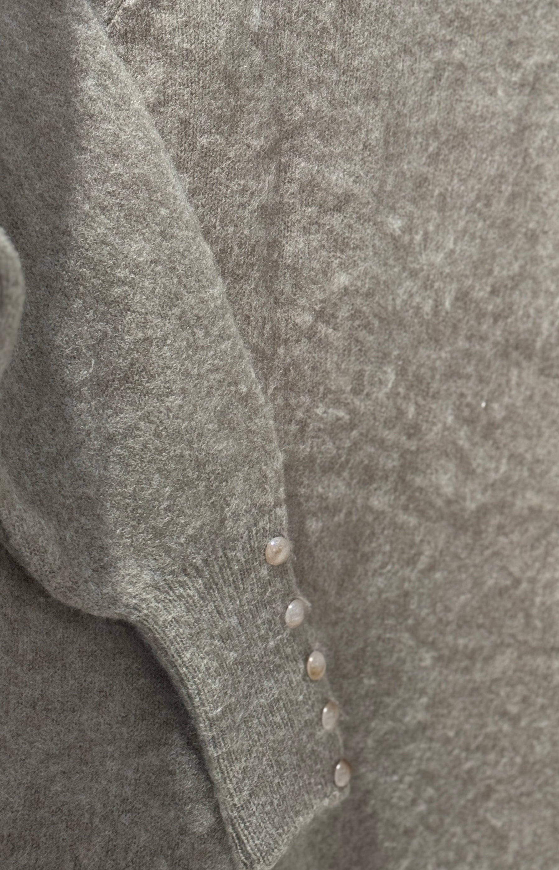 İnci Düğme Detaylı Manşetli Yumuşak Dokulu Triko Kazak - Bej