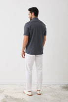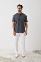 Kısa Kollu Çizgili Örme Erkek Gömlek - Esnek, Rahat, Çekmeyen Kumaş İndigo