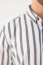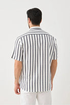 Kısa Kollu Çizgili Şık Örme Erkek Gömlek - Esnek, Rahat, Çekmeyen Kumaş Lacivert