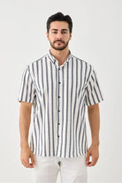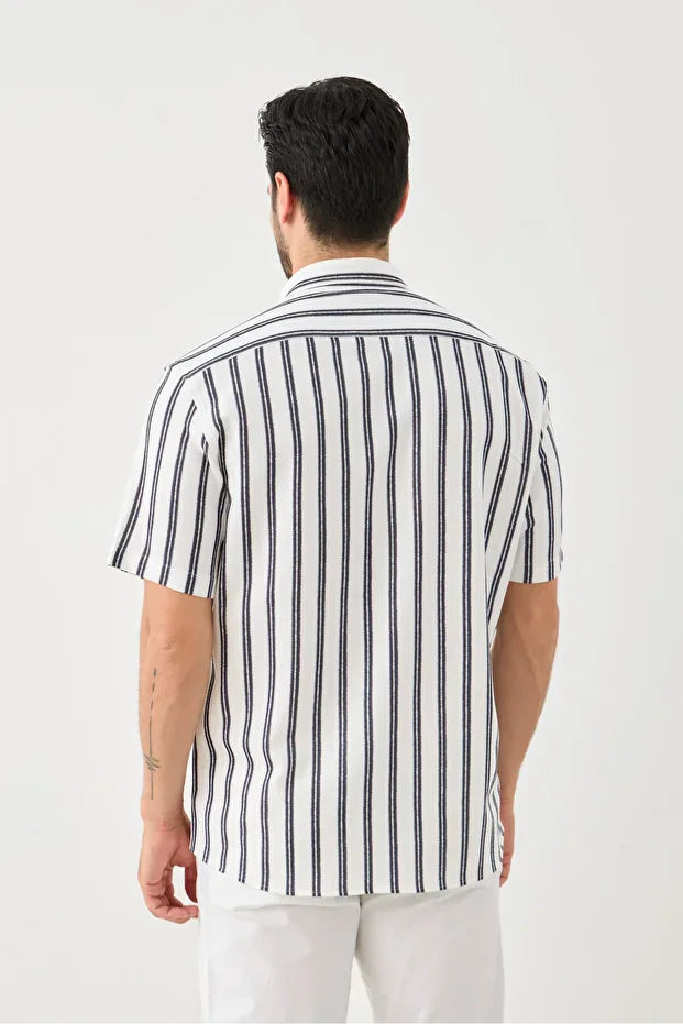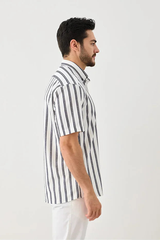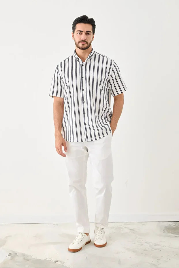 Kısa Kollu Çizgili Erkek Gömlek – Polyester Likra, Slim Fit, Rahat ve Şık Tasarım