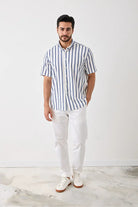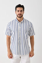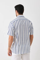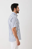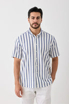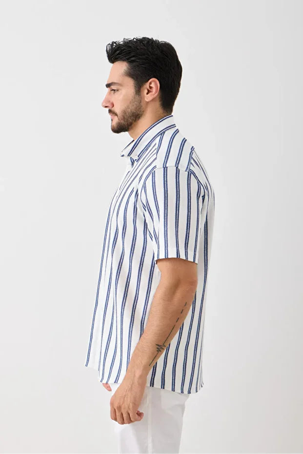 Kısa Kollu Çizgili Şık Örme Erkek Gömlek - Esnek, Rahat, Çekmeyen Kumaş Mavi