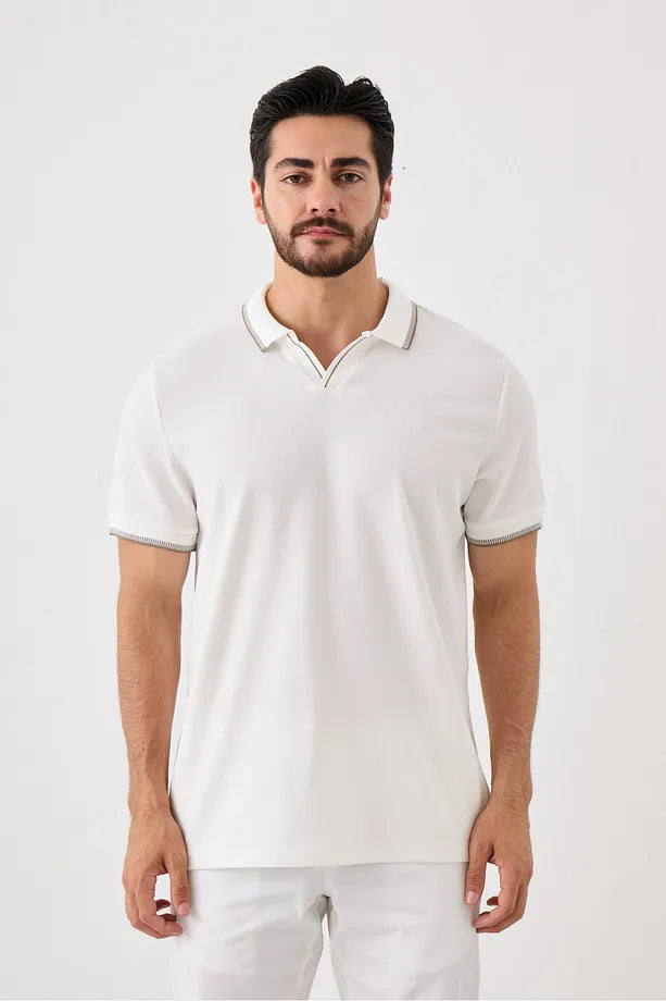 Kısa Kollu Örme Erkek Tişört - Polo Yaka, Çekmeyen, Esnek, Ütü İstemeyen, Tüylenmez Soft Kumaş Beyaz