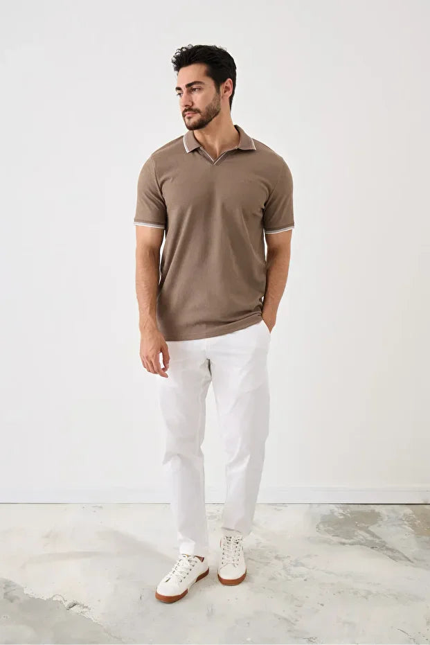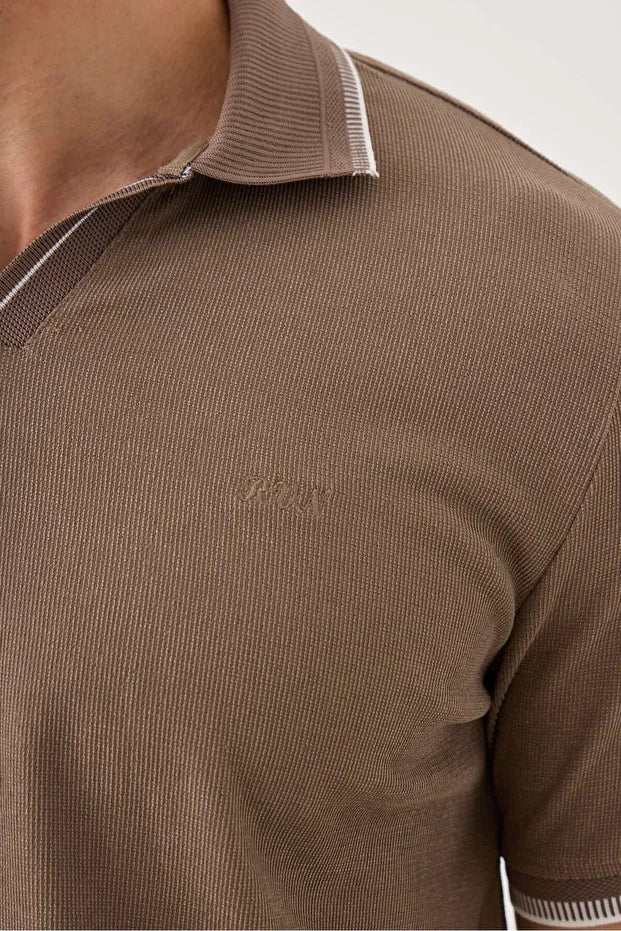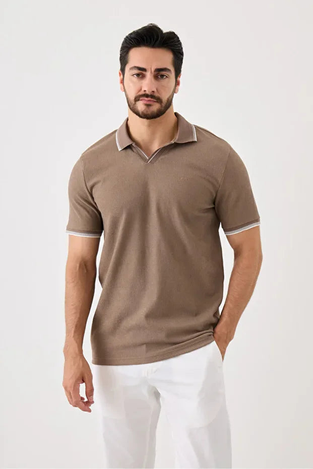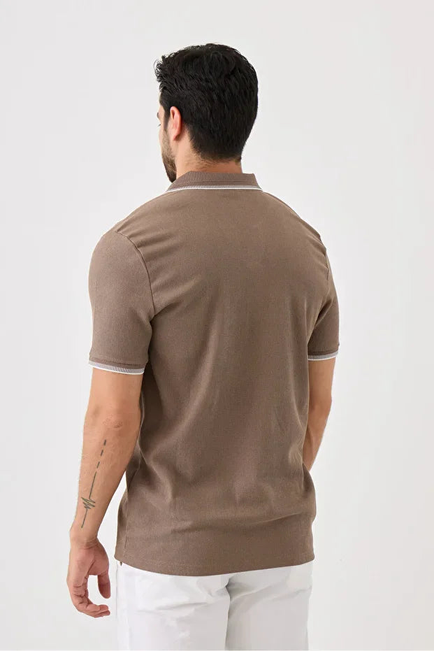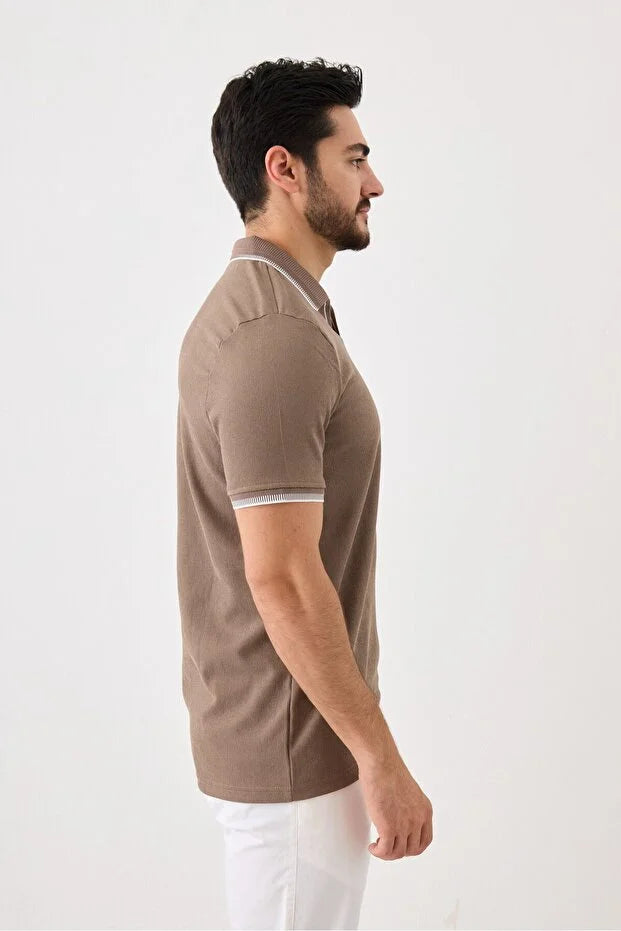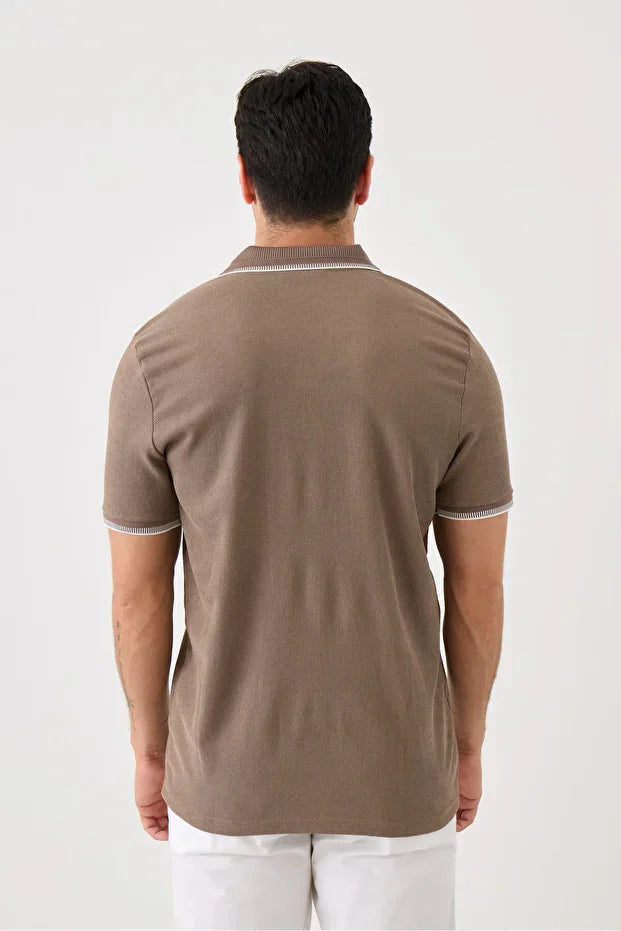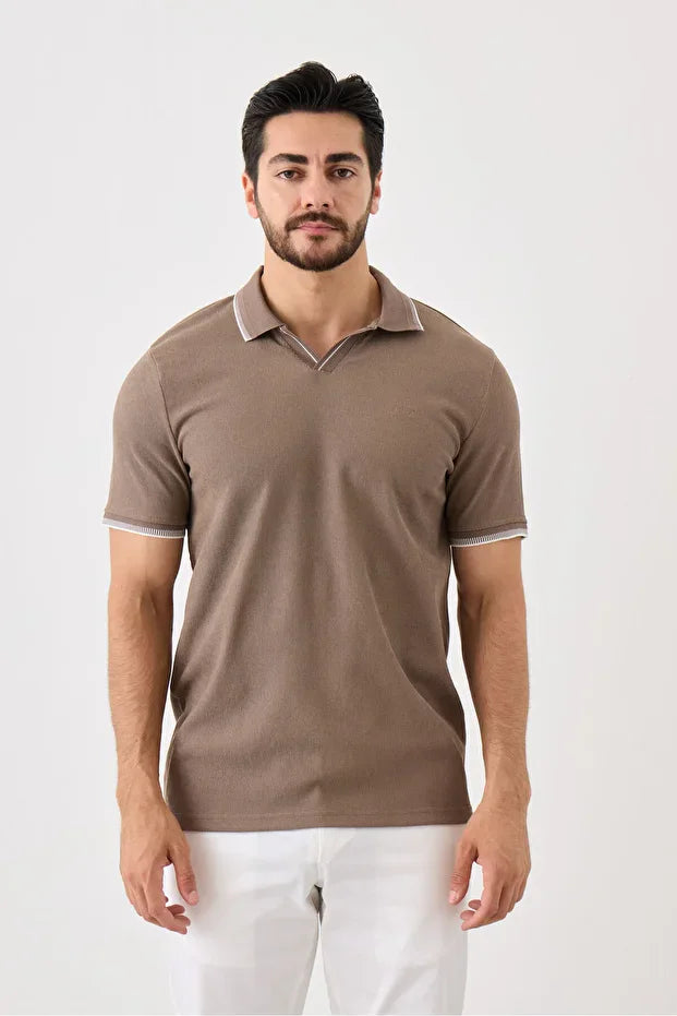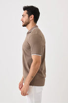 Kısa Kollu Örme Erkek Tişört - Polo Yaka, Çekmeyen, Esnek, Ütü İstemeyen, Tüylenmez Soft Kumaş Kahverengi