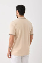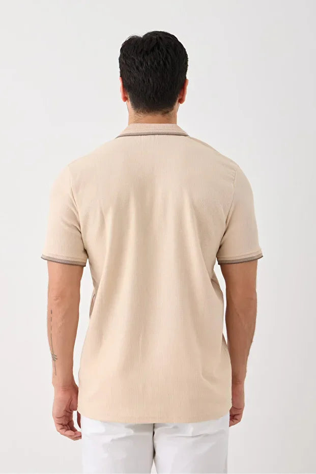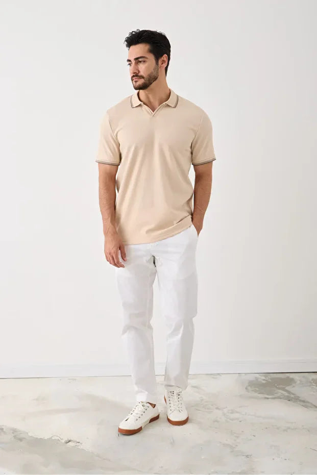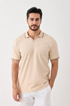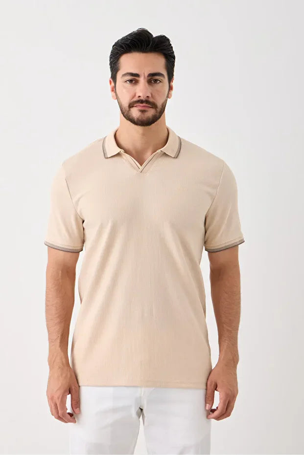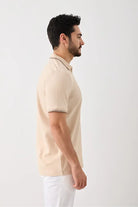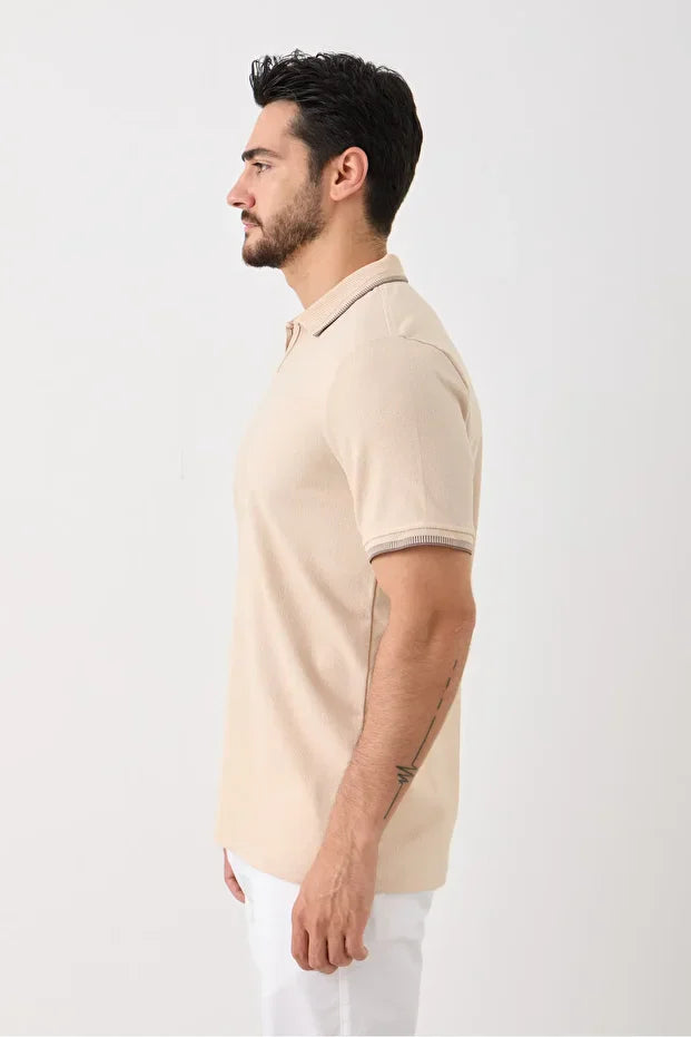 Kısa Kollu Örme Erkek Tişört - Polo Yaka, Çekmeyen, Esnek, Ütü İstemeyen, Tüylenmez Soft Kumaş Krem
