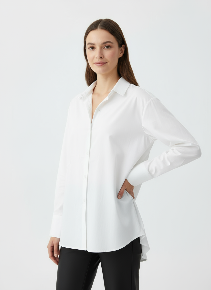 Gardırobunuzun en çok yönlü ve zamansız parçası olan beyaz gömleği, günlük hayatın hızına adapte ettik. Bu gömlek, karmaşık hazırlık süreçlerini geride bırakarak, kişisel stilinize daha fazla zaman ayırmanızı sağlar.